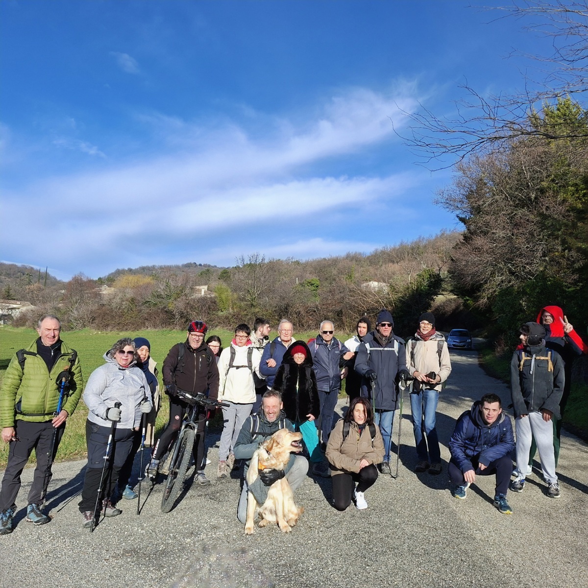 Nous étions 20 dont 4 résidents des Grands Pins de St Paul Trois Chateaux, avec deux éducatrices. Nous avons pris un bon bain de boue avec des chemins très boueux !