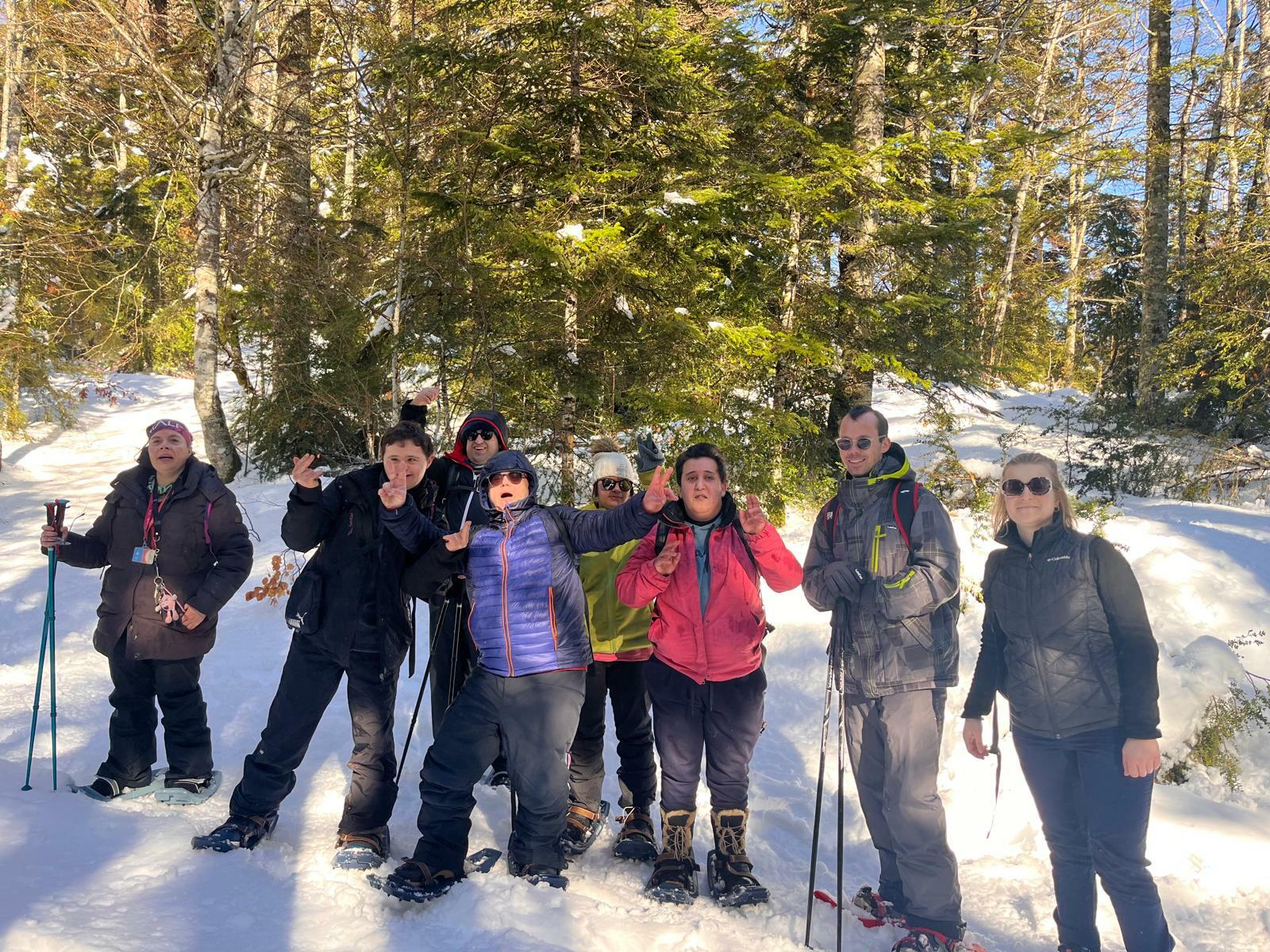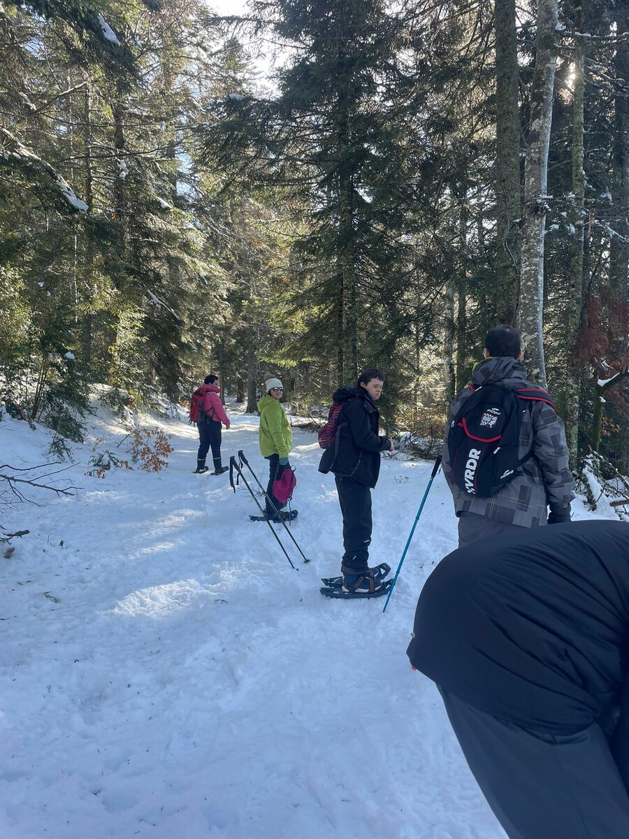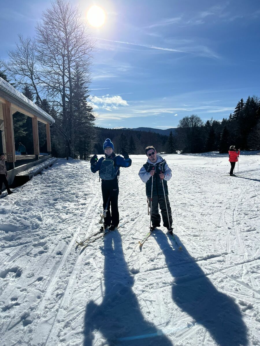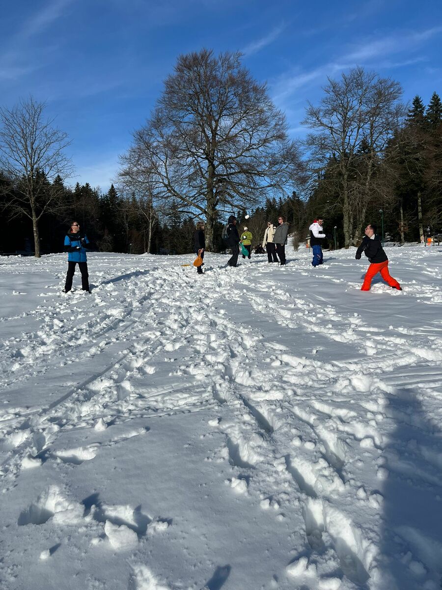 Le week-end a également été rythmé par diverses activités hivernales. Une sortie en raquettes ainsi qu’une séance de ski de fond ont permis aux participants de partager de beaux moments de glisse et de découverte malgré quelques chutes ! Le soleil a largement été au rendez-vous, offrant un cadre lumineux. En revanche, la qualité de la neige n’était pas optimale. Le dimanche, les conditions ne nous ont pas permis de maintenir la sortie en raquettes prévue. Nous avons donc adapté le programme en la remplaçant par une petite balade et une séance de luge, qui a fait le bonheur de tous !