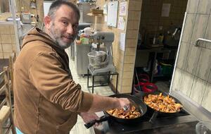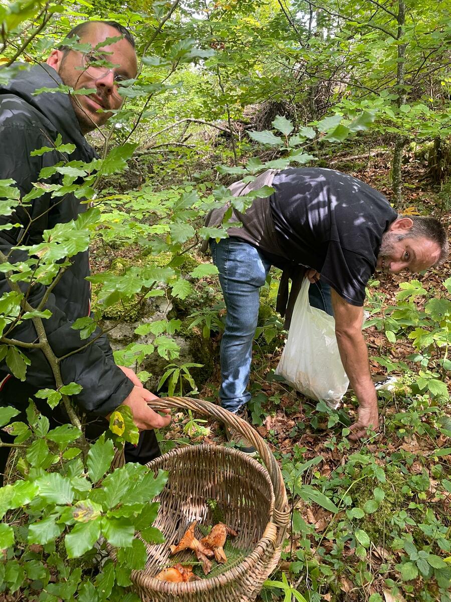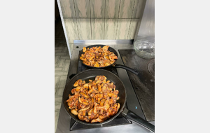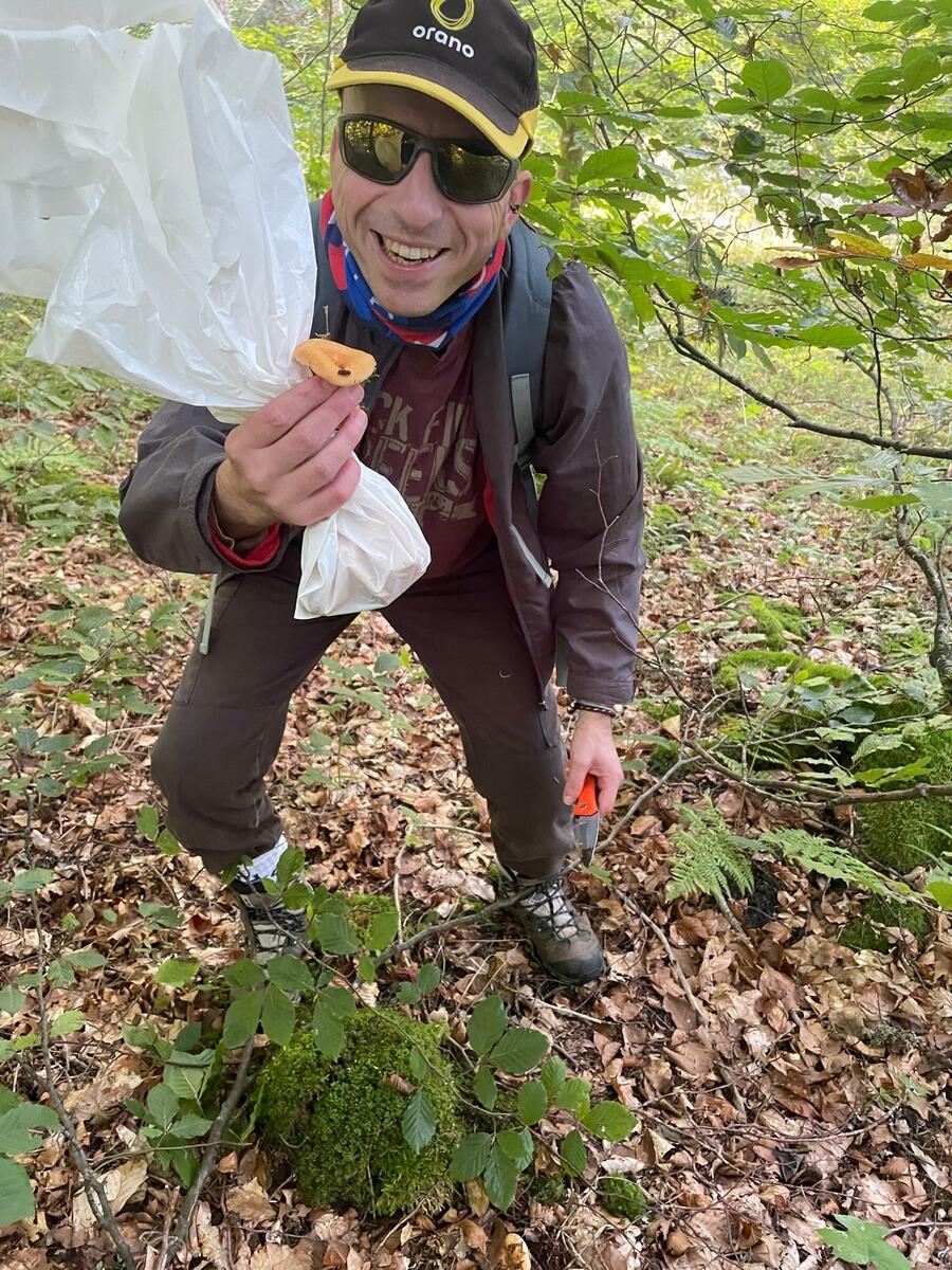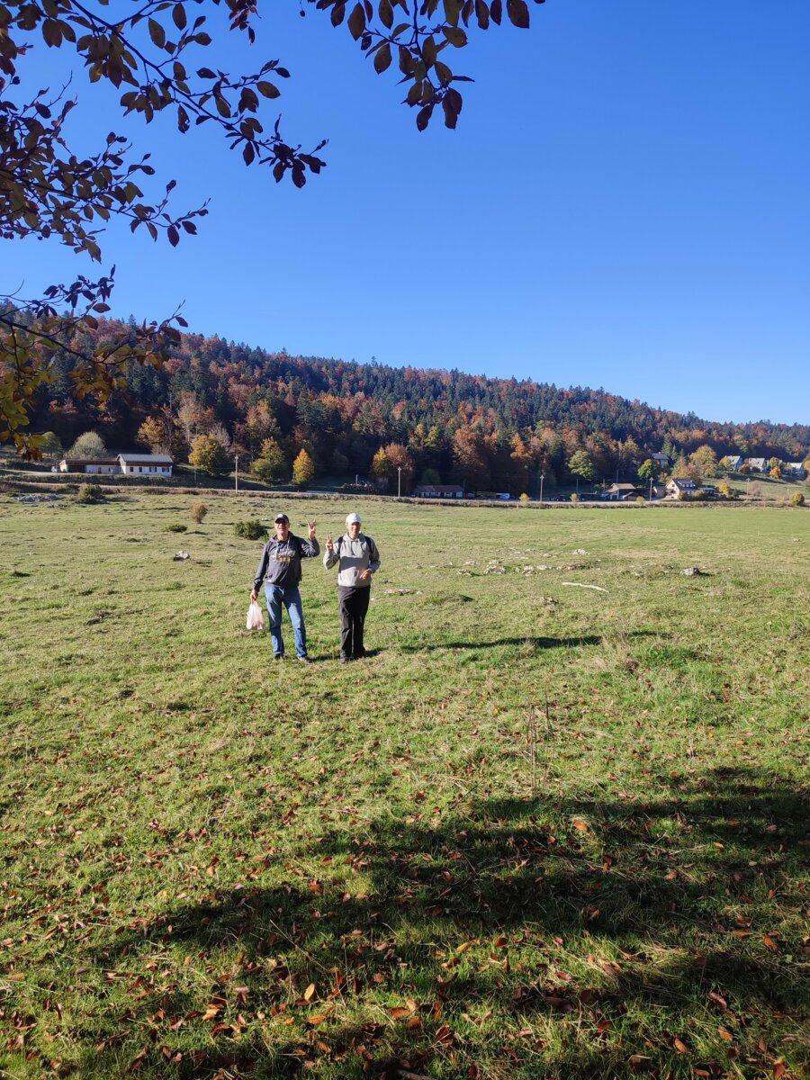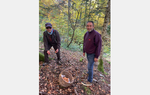 2 Semaines plus tard, nous revoilà au chalet de Lente pour un nouveau week end. Le samedi 18 est doux et beau, le soleil emmène des couleurs magnifiques dans les arbres et leurs feuilles automnales. Nous en profitons pour faire un premier tour rapide le matin près du chalet pour voir où en sont les champignons. Les sanguins sont toujours bien présent mais rien de plus ! L'après midi, nous repartons un peu plus loin, d'abord pour voir la grotte du Brudour, puis pour rentrer jusqu'au gite à pied pour un groupe et repartir en ceuillette pour l'autre. Au final se sont de beaux paniers qui sont ramassés pour l'omelette du soir ! Celle ci préparée par Lionel rassasie tout le monde.