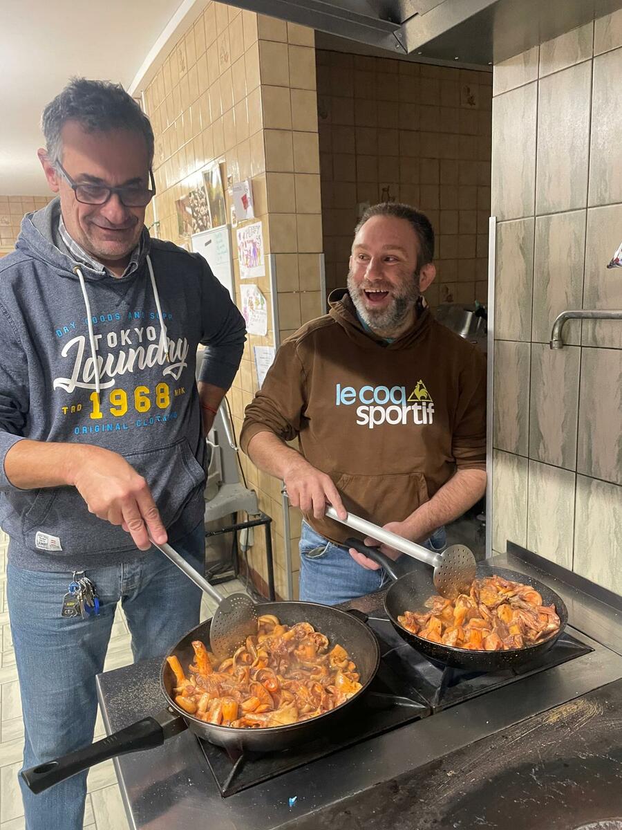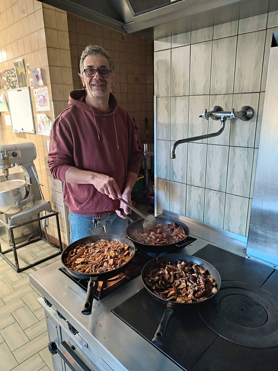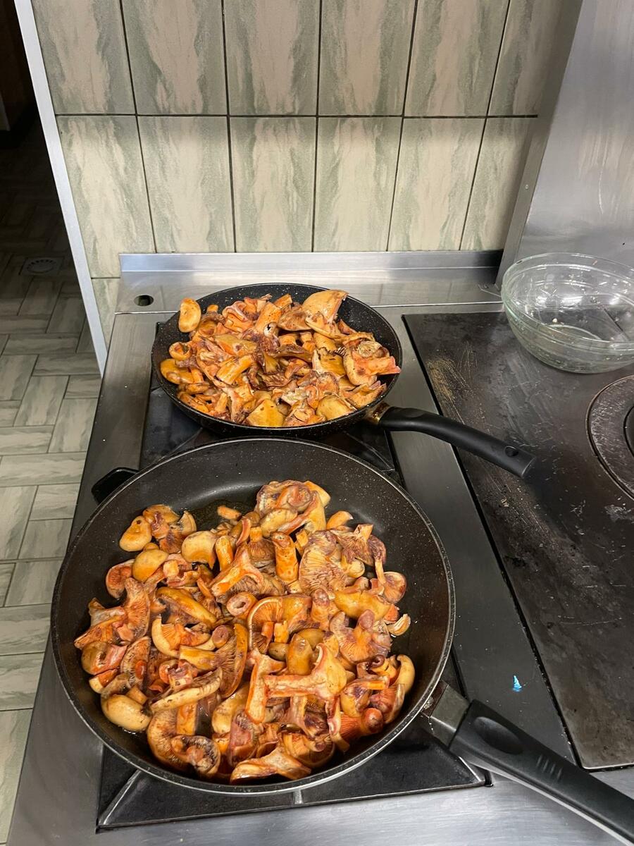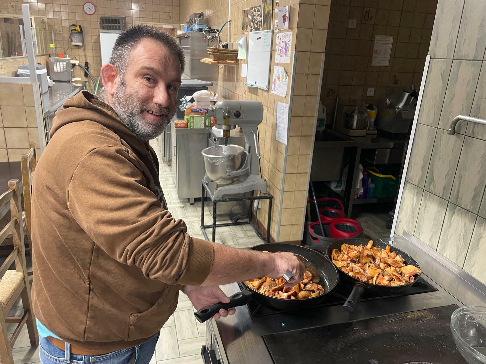 2 Semaines plus tard, nous revoilà au chalet de Lente pour un nouveau week end. Le samedi 18 est doux et beau, le soleil emmène des couleurs magnifiques dans les arbres et leurs feuilles automnales. Nous en profitons pour faire un premier tour rapide le matin près du chalet pour voir où en sont les champignons. Les sanguins sont toujours bien présent mais rien de plus ! L'après midi, nous repartons un peu plus loin, d'abord pour voir la grotte du Brudour, puis pour rentrer jusqu'au gite à pied pour un groupe et repartir en ceuillette pour l'autre. Au final se sont de beaux paniers qui sont ramassés pour l'omelette du soir ! Celle ci préparée par Lionel rassasie tout le monde.