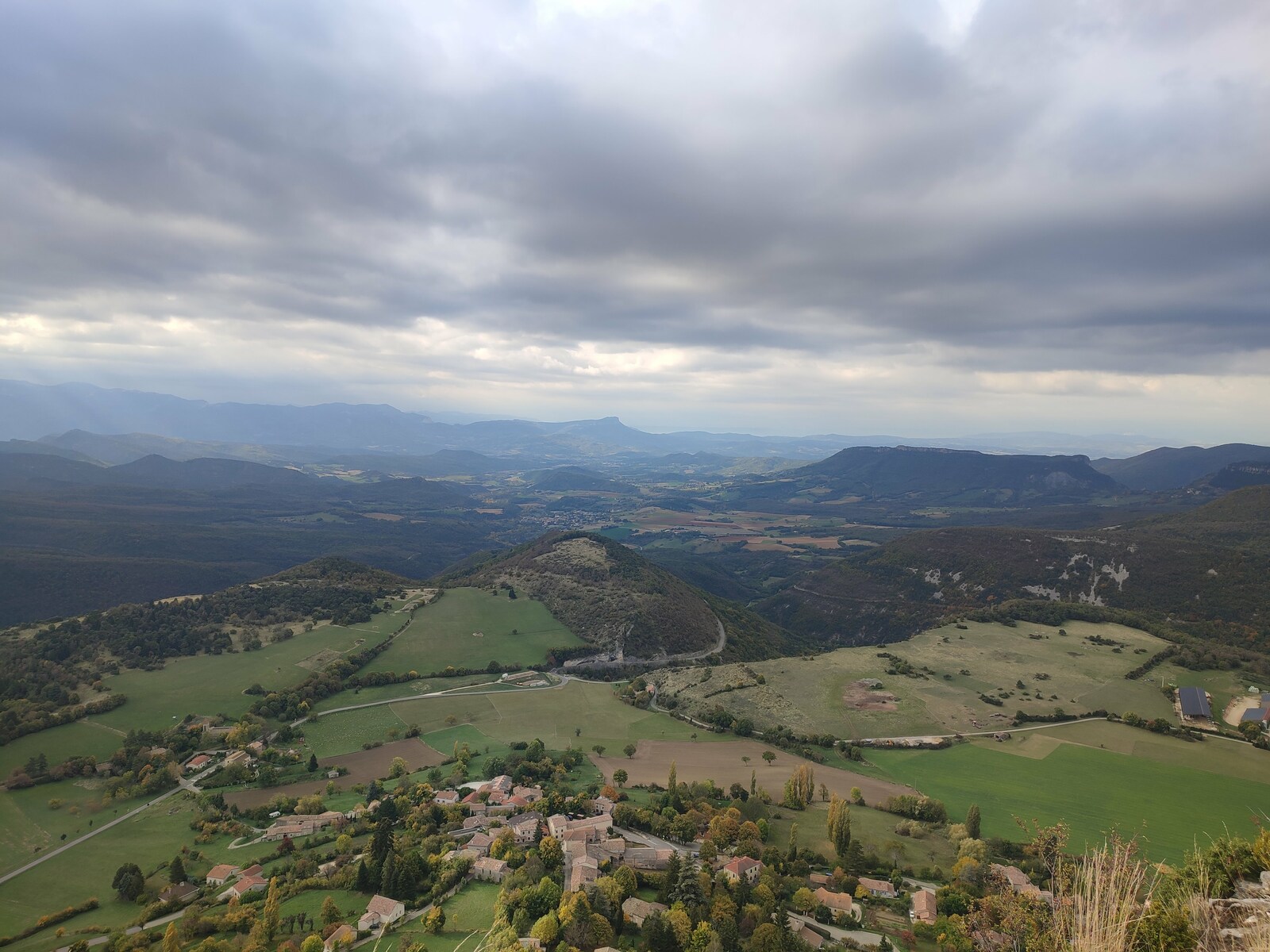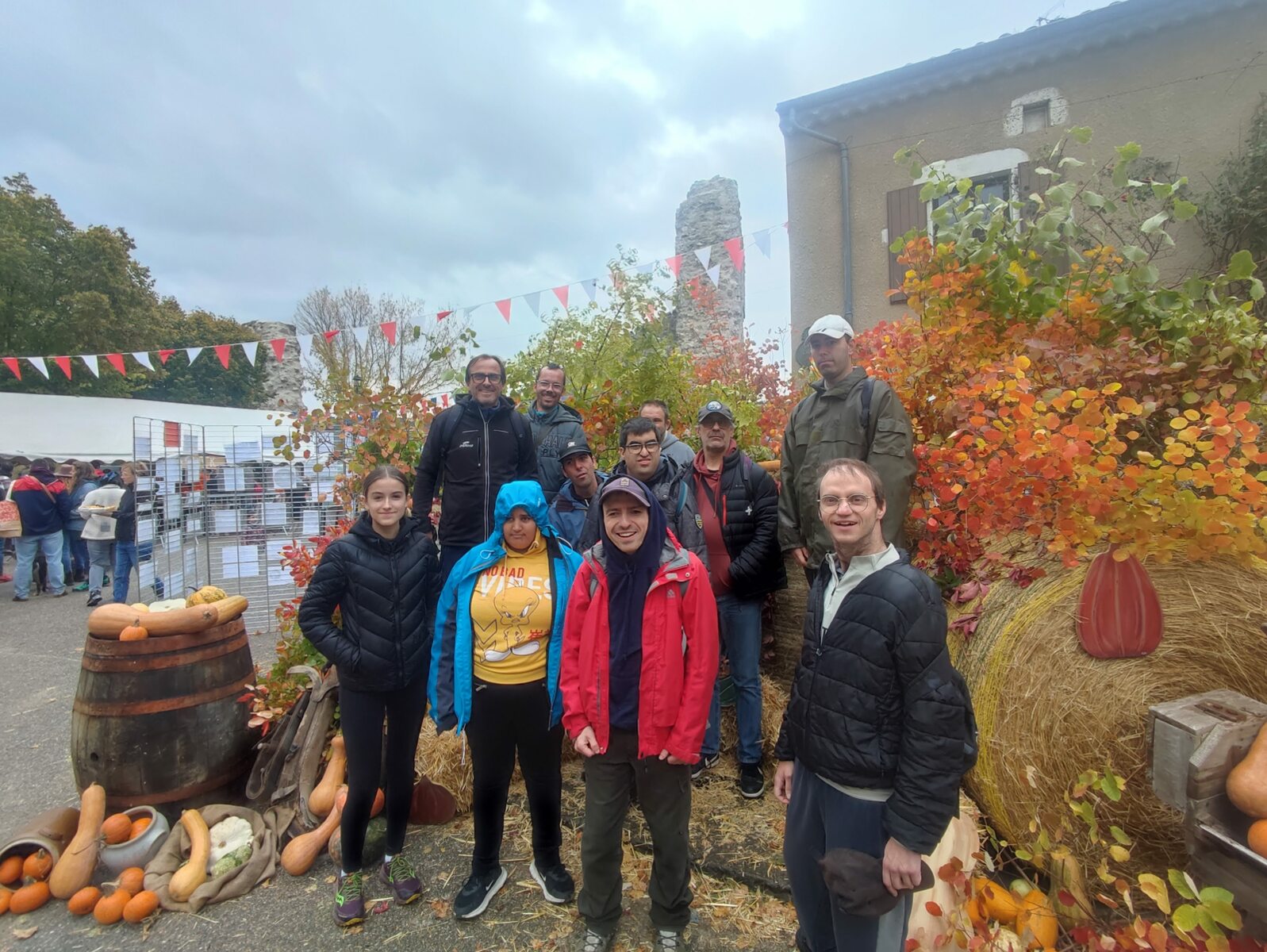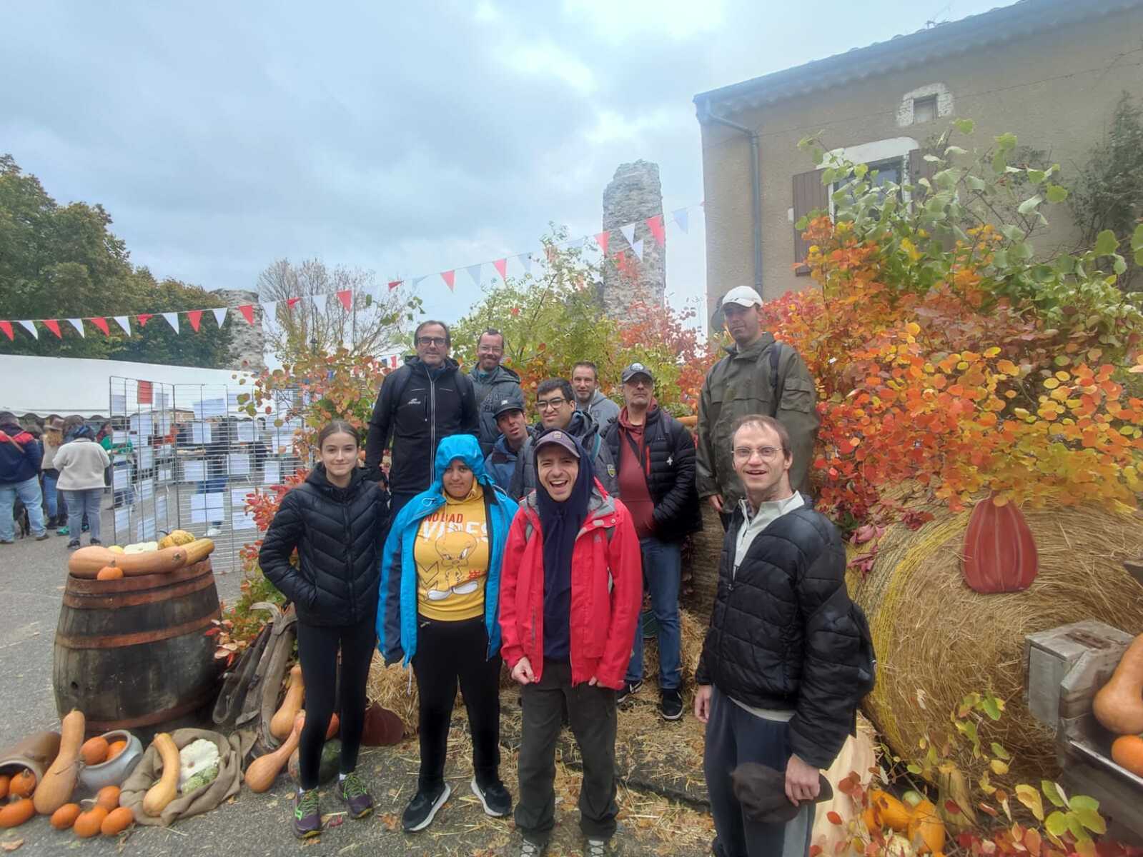 Le lendemain, après une nuit agitée par le vent, nous nous rendons à Beaufort sur Gervannes, pour la fête de la courge ! Avant ça, nous nous arrêtons pour marcher jusqu'à la croix du Vellan, qui nous offre une superbe vue sur la vallée en dessous. Le vent nous décoiffe et fait passer 2 vautours tout proche de nous ! Après la redescente et le pique nique, nous nous rendons à cette fête de la courge, pour faire le tour des exposants, voir une démonstration de chien de troupeau et participer au concours de lancer de béret ! Quelques averses nous font finalement partir en fin d'parès midi pour rentrer chacun chez soi...