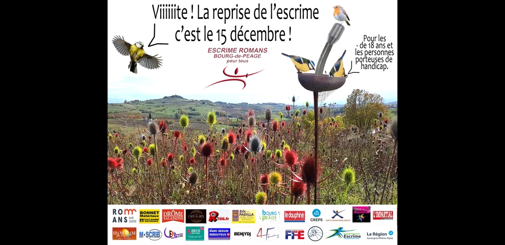 Après cette interruption et la séance du mois de Novembre qui n'a pas pu être maintenue, les séances d'escrime peuvent reprendre lors de la séance du mois de Décembre. Celle ci est fixée au samedi 19 Décembre, aux lieu et horaires habituels (Salle d'escrime de Romans de 13h45 à 15h15).