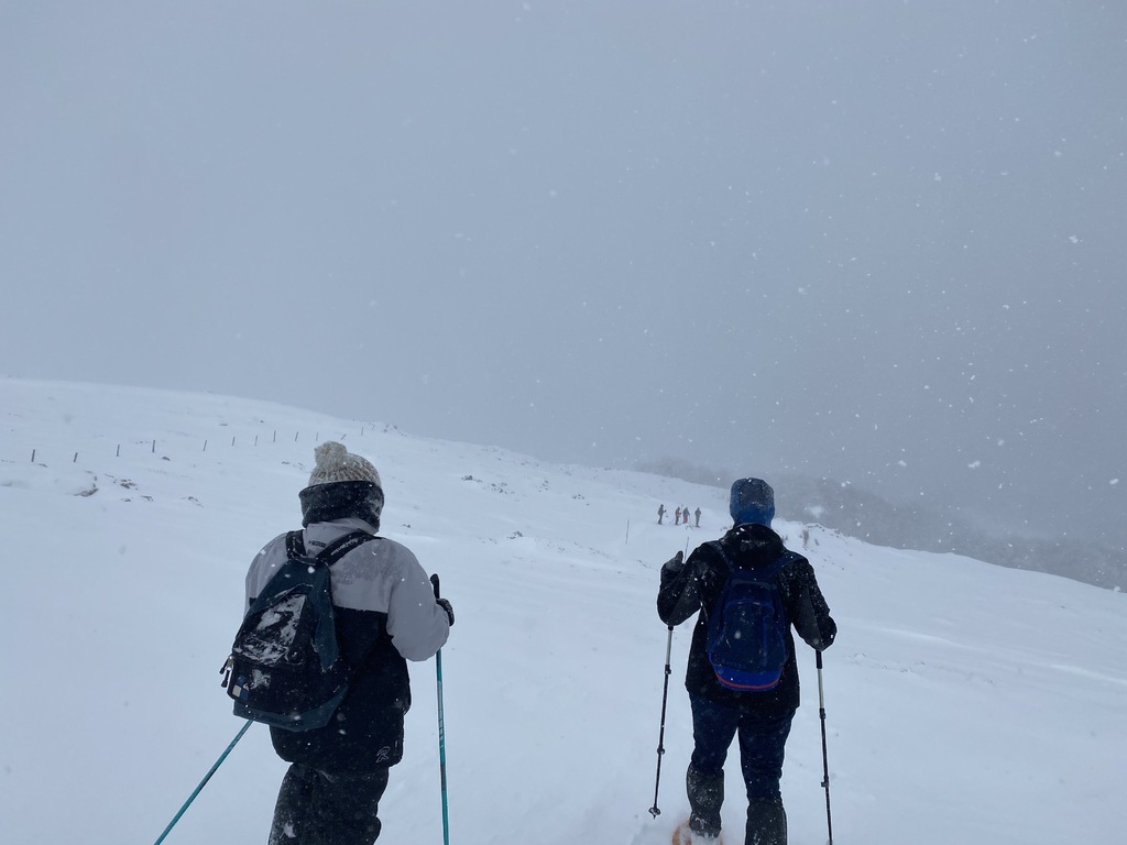 C'est sous un temps très eneigé que Thomas, Jean-François, Rayan, Clément accompagné par Franck, Hugo, Jessica et Lucinda, se sont lancés dans une petite randonnée raquette. Celle - ci a été écourté en raison du temps et du manque de visibilité. Mais nous avons terminé avec un bon pique nique au chaud dans le trafic !