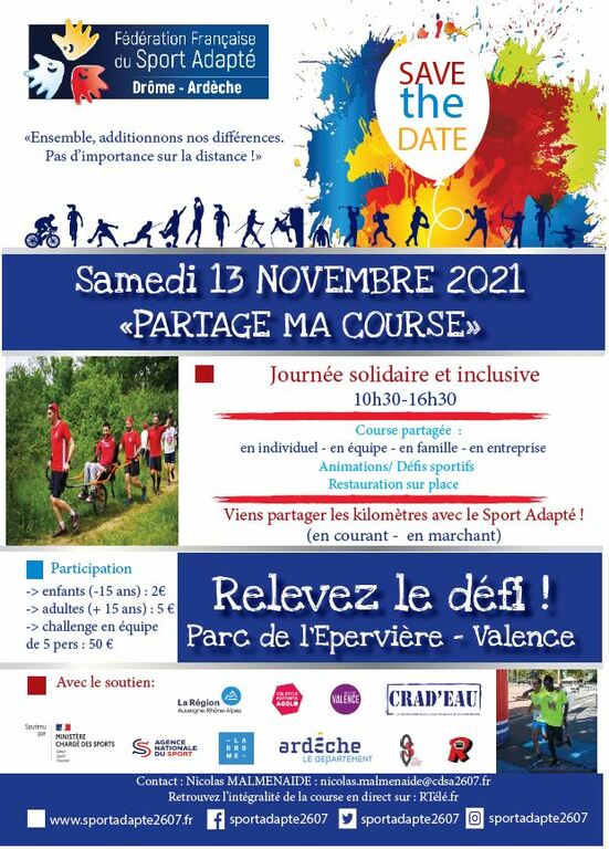 Le Samedi 13 Novembre le Comité Départemental de Sport Adapté (CDSA 26-07) organise l'évènement "Partage Ma Course".