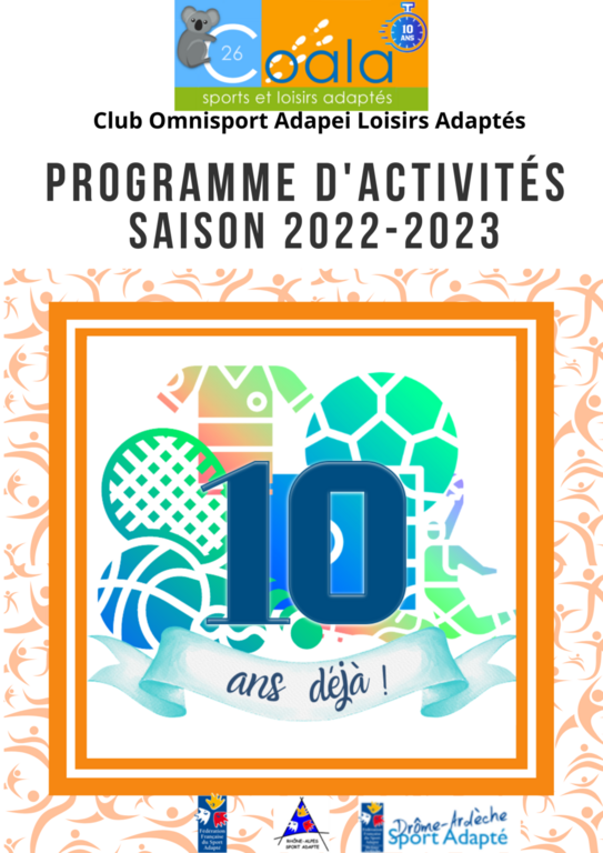 Retrouvez notre nouveau programme d'activités 2022-2023. Au programme : des activités régulières et loisirs mais aussi le calendrier des 10 actions anniversaire pour les 10 ans de l'association.