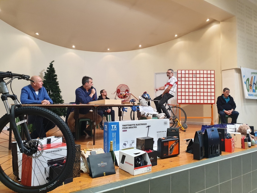Le vélo aménagé pour le tirage des boules a attiré les regards et a bien fonctionné tout l'après-midi ! Bravo à Alain et Franck pour l'invention.