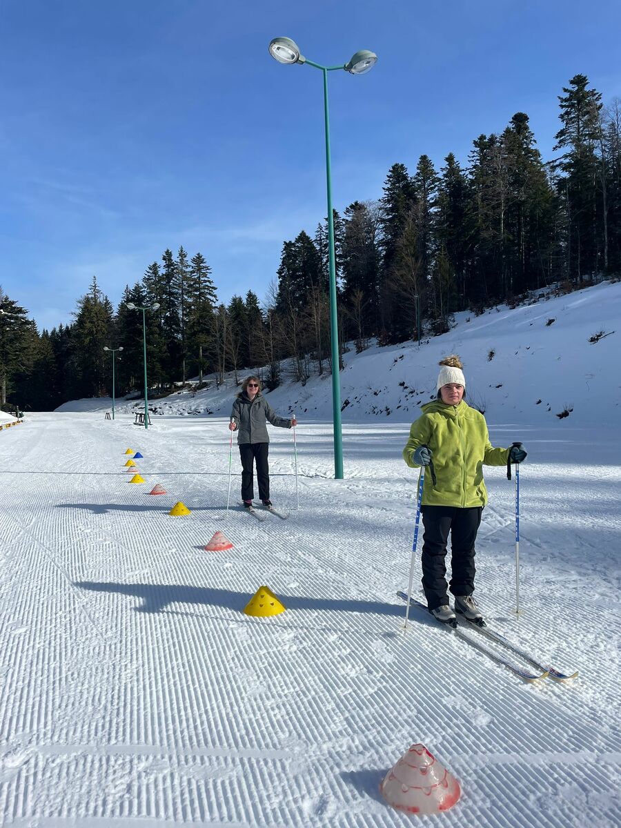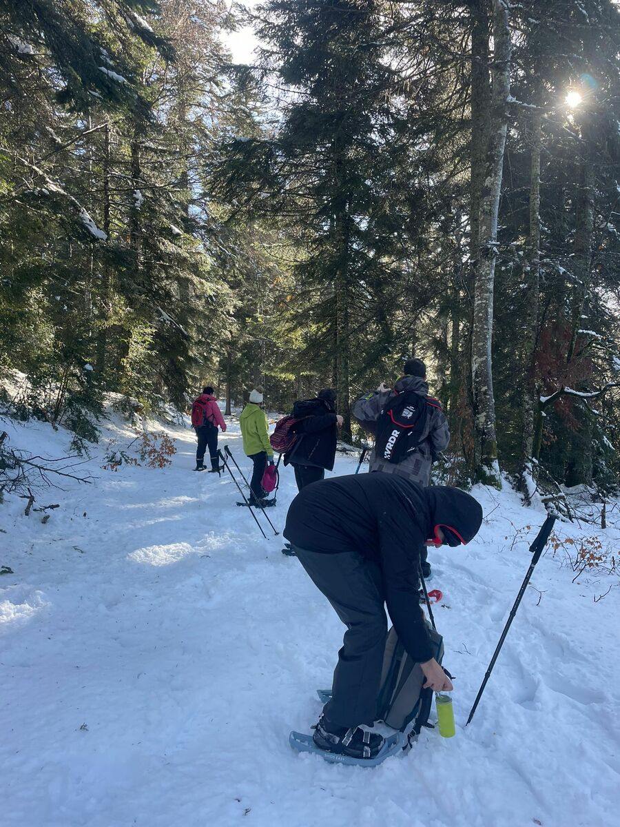 Le week-end a également été rythmé par diverses activités hivernales. Une sortie en raquettes ainsi qu’une séance de ski de fond ont permis aux participants de partager de beaux moments de glisse et de découverte malgré quelques chutes ! Le soleil a largement été au rendez-vous, offrant un cadre lumineux. En revanche, la qualité de la neige n’était pas optimale. Le dimanche, les conditions ne nous ont pas permis de maintenir la sortie en raquettes prévue. Nous avons donc adapté le programme en la remplaçant par une petite balade et une séance de luge, qui a fait le bonheur de tous !