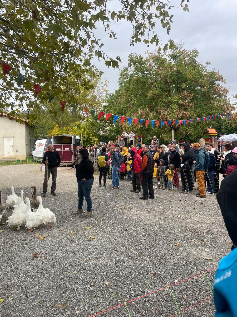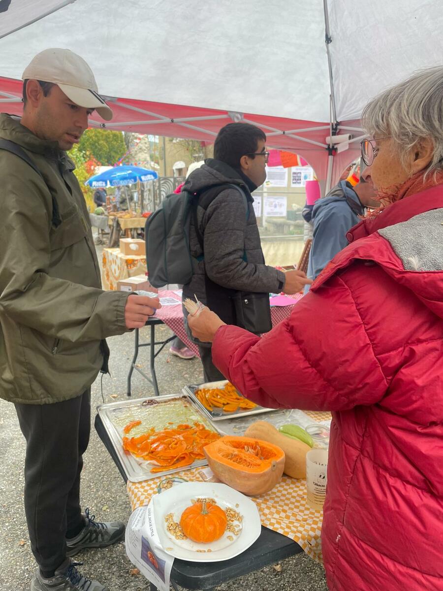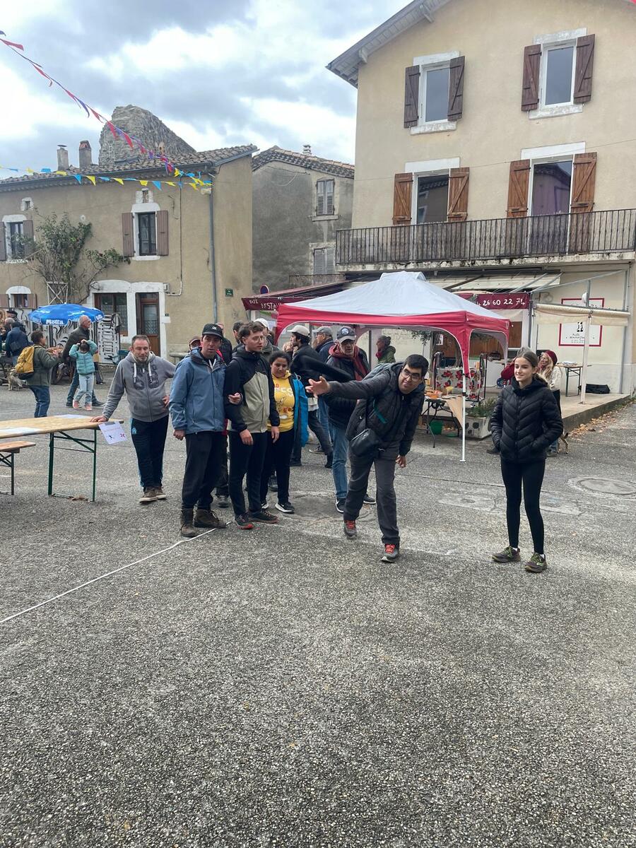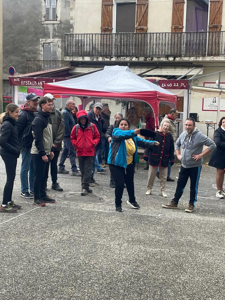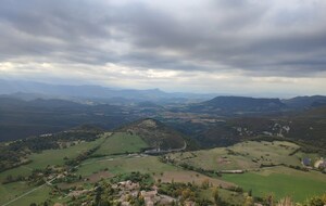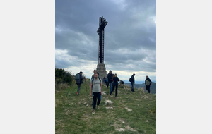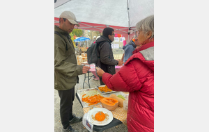 Le lendemain, après une nuit agitée par le vent, nous nous rendons à Beaufort sur Gervannes, pour la fête de la courge ! Avant ça, nous nous arrêtons pour marcher jusqu'à la croix du Vellan, qui nous offre une superbe vue sur la vallée en dessous. Le vent nous décoiffe et fait passer 2 vautours tout proche de nous ! Après la redescente et le pique nique, nous nous rendons à cette fête de la courge, pour faire le tour des exposants, voir une démonstration de chien de troupeau et participer au concours de lancer de béret ! Quelques averses nous font finalement partir en fin d'parès midi pour rentrer chacun chez soi...