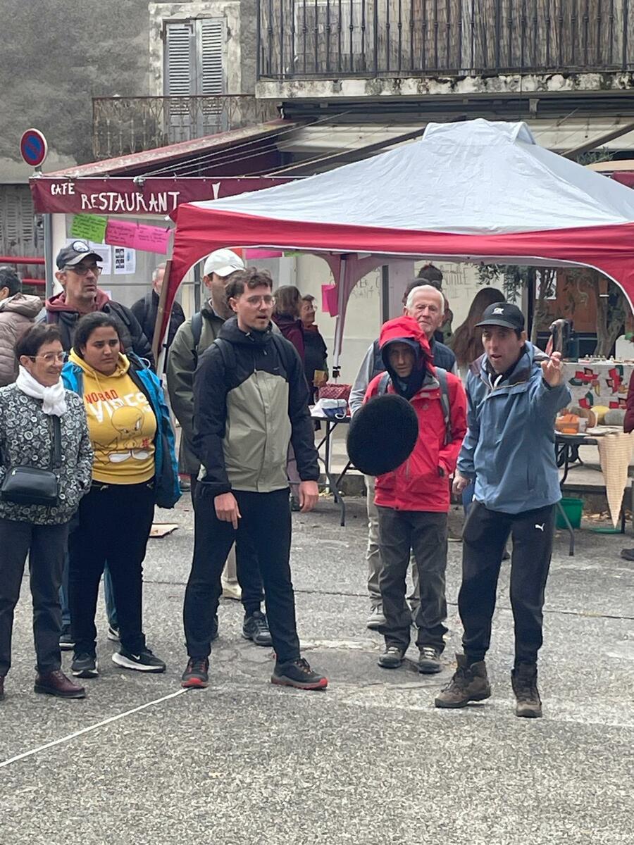 Le dimanche, la météo était bien compliquée, avec de la brume de la pluie et seulement 4 degrés au thermomètre... Pour ne pas prendre froid, nous sommes allés visiter le musée de la Résistance à Vassieux en Vercors, puis nous avons bu un coup tous ensemble. Nous avons également encouragé quelques courageux sportifs qui s'étaient élancés le matin même sur un trail au départ de Font d'Urle. L'après midi, nous redescendons sur Pont en Royans pour profiter d'un temps plus doux et de quelques rayons de soleil le long de la Bourne. Puis il est l'heure de retourner auprès des foyers et des familles !